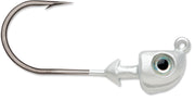 The VMC Boxer Jig Heads feature a traditional “boxing glove” head design - ideal for jigging or swimming swimbaits. Premium 1x strong needle point hooks, complete with a forged shank, high-carbon steel construction and traditional round bend deliver excellent hooking capabilities. The VMC® Boxer Jig Heads also come equipped with realistic 3D eyes and molded-in bait keeper. The ideal jighead for Umbrella rigs.
