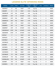 • LEGEND ELITE® SPINNING RODS feature: