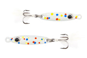 The Eurotackle T-Flasher tungsten jigging spoon is the one bait we all need! This game changer hard bait features a 99% Tungsten body, a custom Eurotackle treble hook with hand tied feathers, with high quality Glow and UV colors available. Targeting Panfish, Walleye, Trout, Perch, Bass, Bluegill and Crappie with ice fishing spoon can be super effective. The T-Flasher is a fast sinking spoon due to its Tungsten composition, which is a key factor when it comes to any type of fishing including ice fishing. The way this bait is fished can vary from ripping deep for walleye or slowly jiggled for perch and bass. When it comes to having the high quality fishing gear the Eurotackle T-Flasher Tungsten spoon is must!