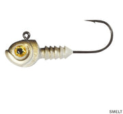 The Smeltinator is offered in four different weights (1/8 oz, ¼ oz, 3/8 oz, and ½ oz) and five different hook sizes (1/0-5/0) making this jig useful in a wide array of applications and different soft plastic baits. The rise of forward facing sonar and pressured waters create the need for proper baitfish imitations whether they are small perch or giant shad! For small finesse swimbaits, minnow baits, etc. around 3” in length, the 1/0 or 2/0 hook size would be most popular. The 2/0 and 3/0 hook size pairs up well for baits around 4”. This was the jig size ‘Gussy’ used during his Bassmaster Elite Series and Bassmaster Classic win on the Tennessee River while utilizing a 4 and 5 inch minnow style bait. For baits that are greater than 5 inches, anglers will lean towards the 4/0 or 5/0 hook size.