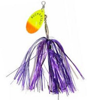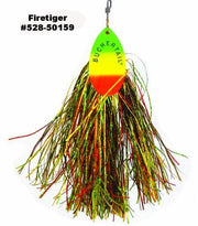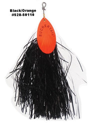 The Buchertail 500 Tinsel is built on a new concept focused on making a downsized version of the popular Buchertail 700 that casts and works like a full sized musky spinner.   Unlike most downsized in-line spinners, the Buchertail 500 Tinsel has the same weight as our larger Buchertail 700 and an oversized treble hook.  This design allows you to cast the 500 easily with a full sized conventional musky rod & reel outfit.  The additional weight also allows the angler to retrieve this lure faster to trigger more strikes from following muskies and big pike.